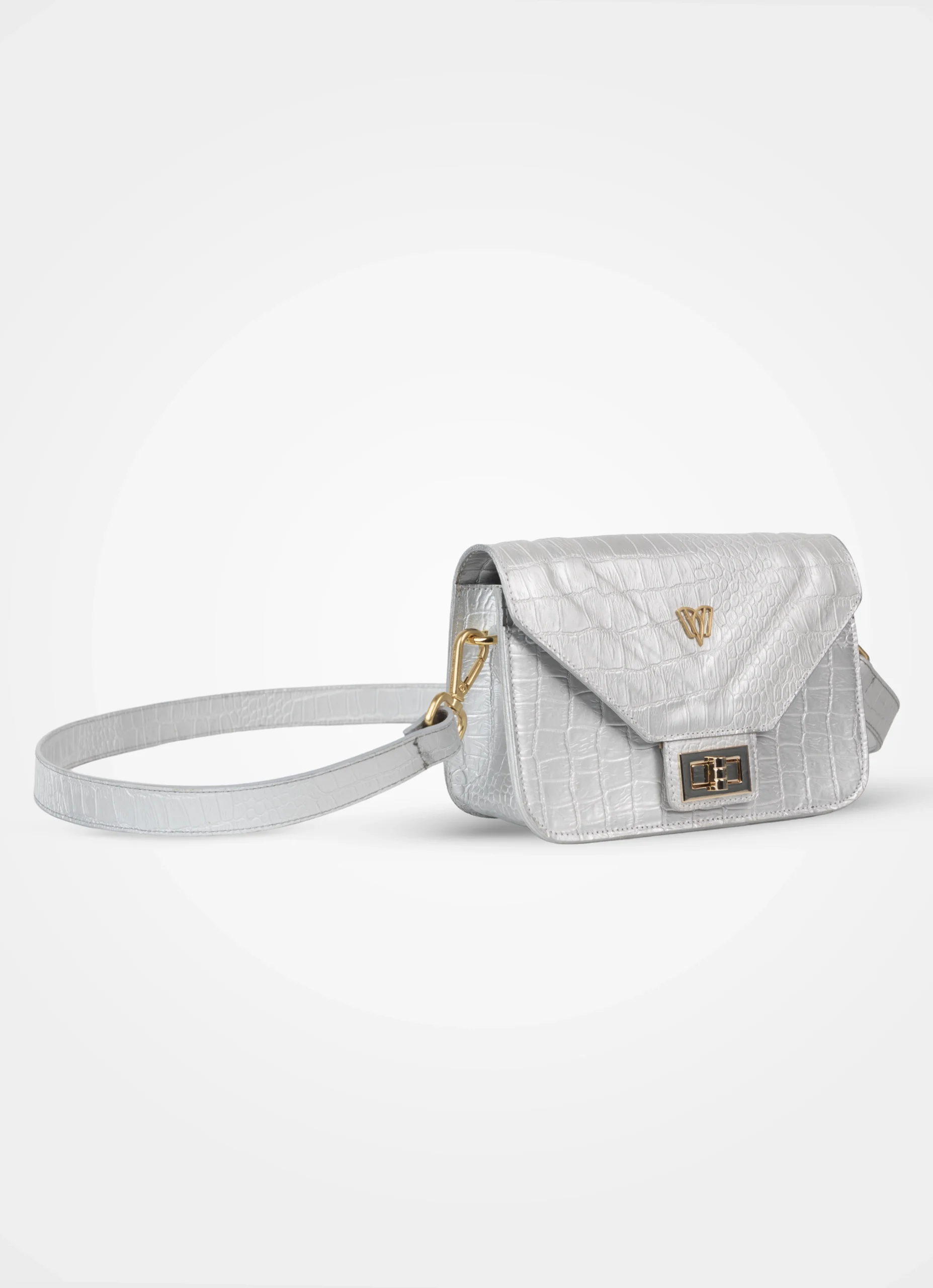 Split crossbody bag | Crocodile - Silver, Slim