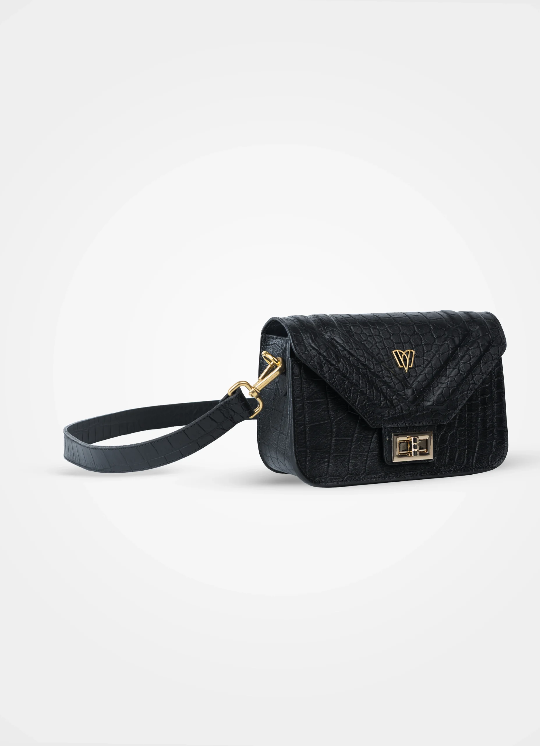 Split crossbody bag | Crocodile - Black, Slim