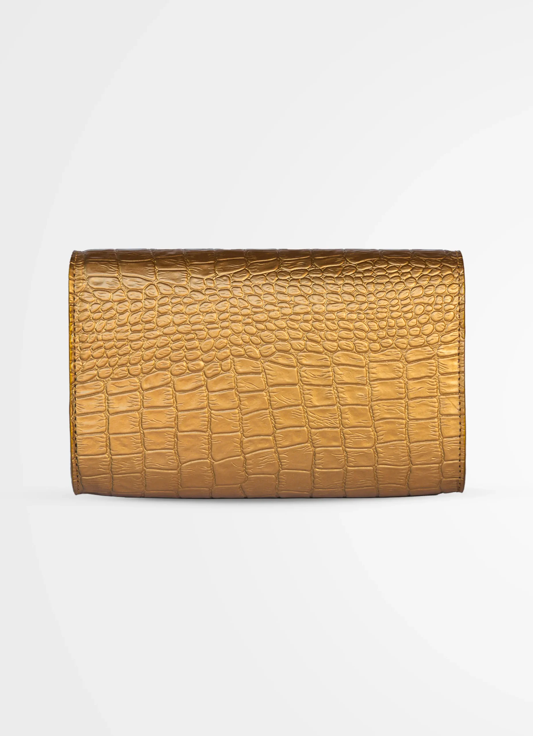 Clutch en cuero genuino con textura de cocodrilo.