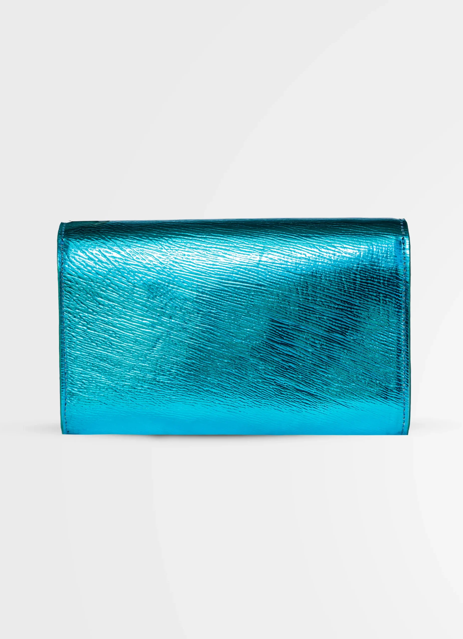 Clutch en cuero genuino con textura de piel de tiburón.