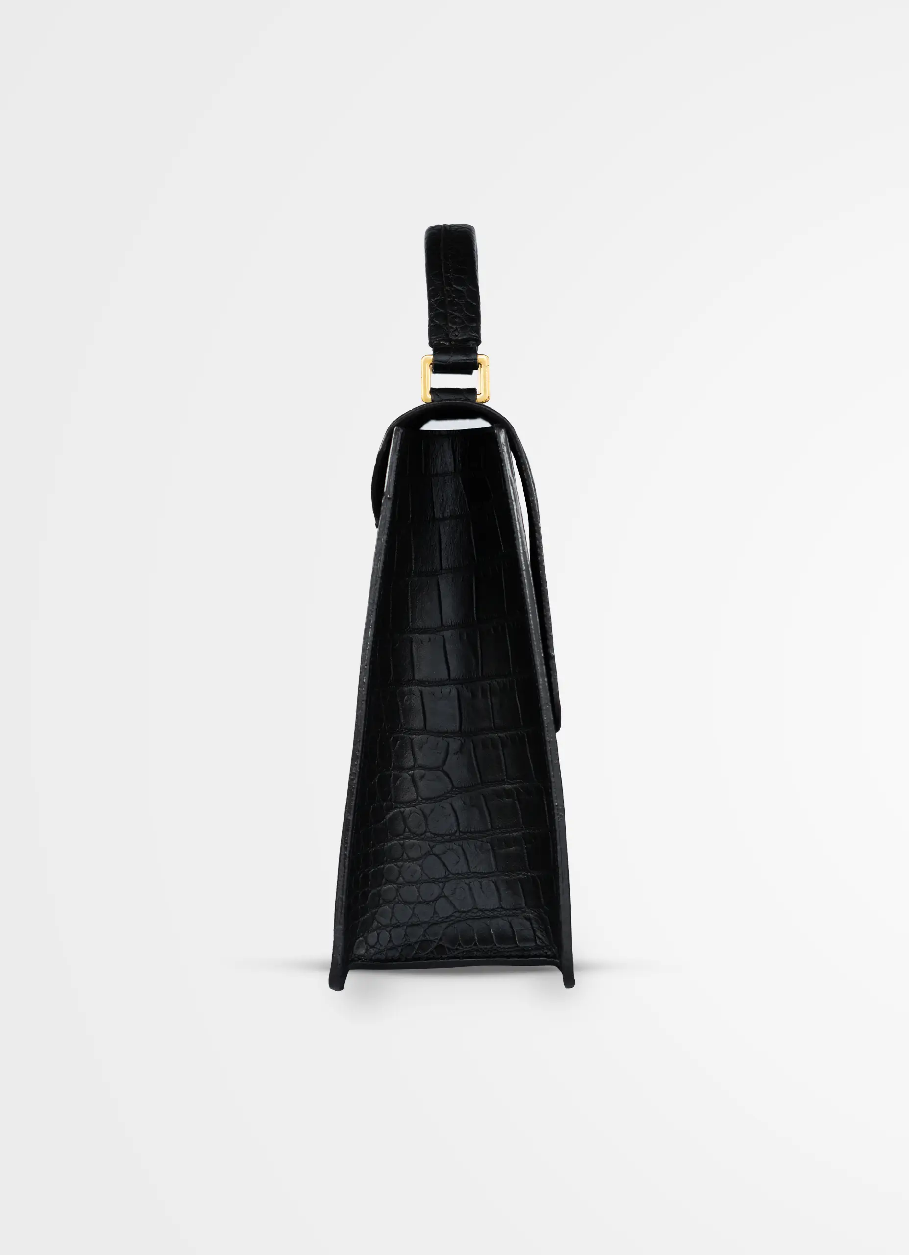 Bolso en cuero genuino con textura de cocodrilo.