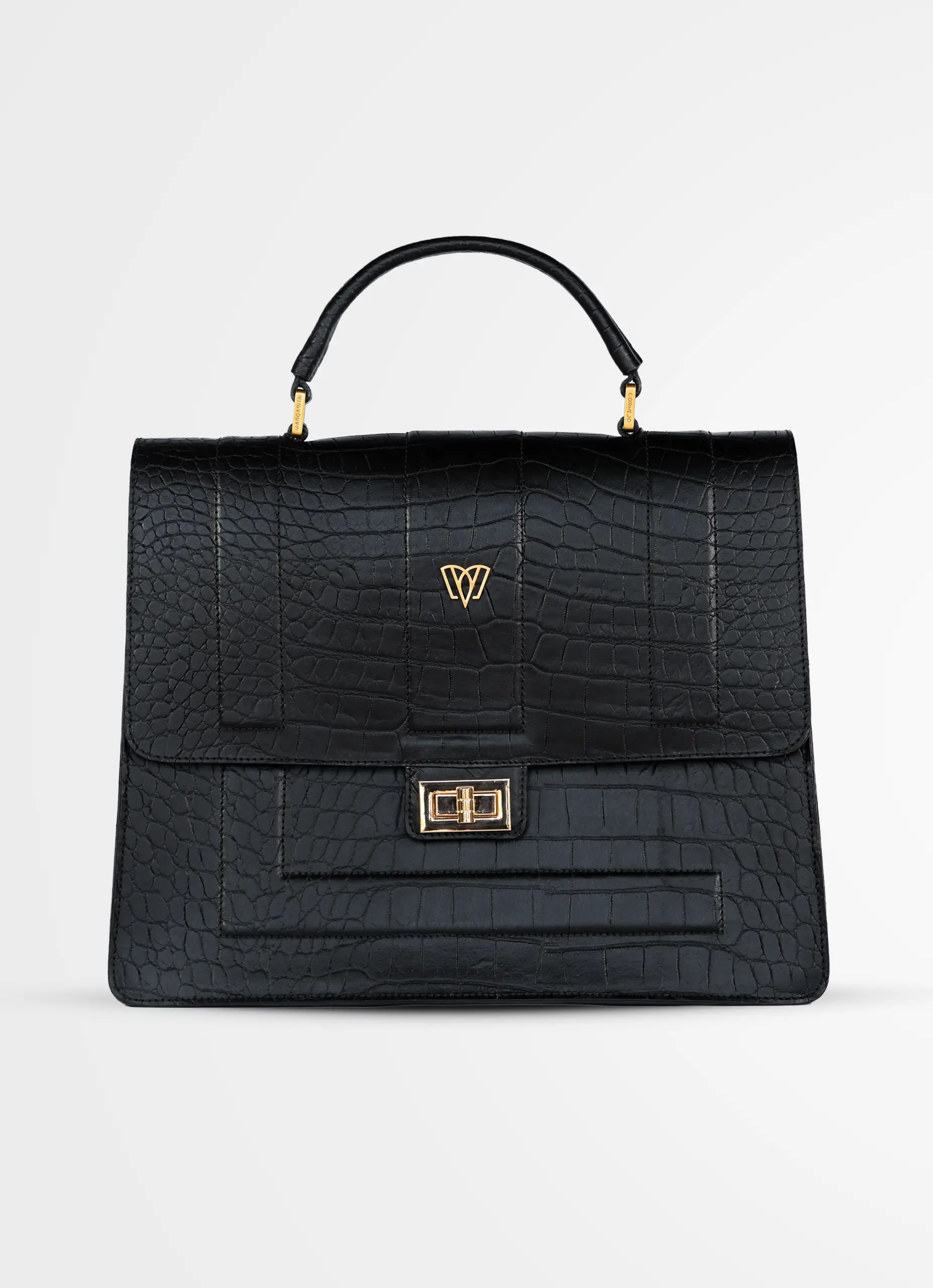 Una forma tradicional, con un toque moderno, confeccionada utilizando cueros de alta calidad, embosados con textura de cocodrilo. Este bolso posee detalles de alto relieve y herrajes metálicos personalizados con la marca. Además, tiene espacio para todos tus elementos esenciales.