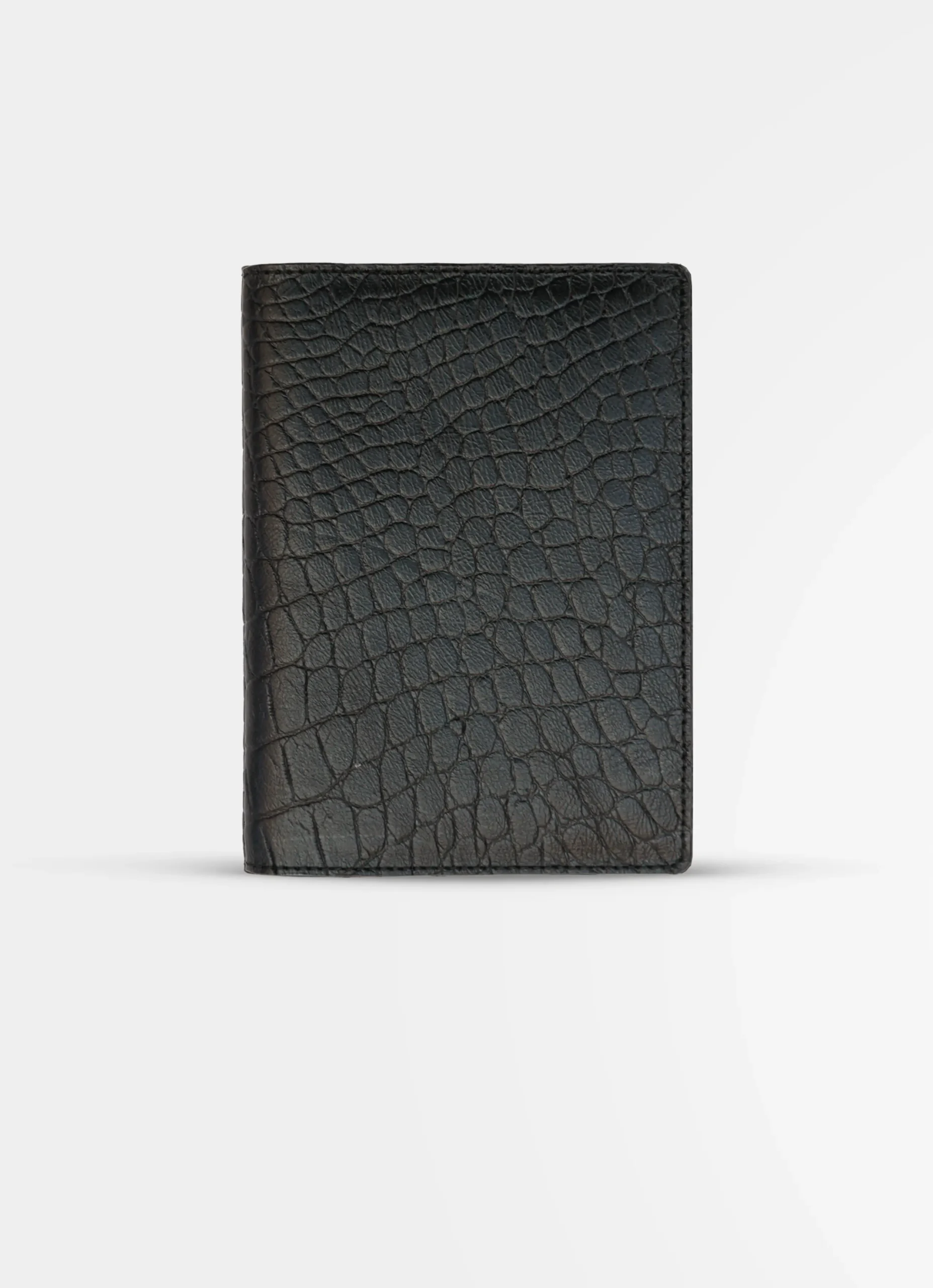 Portapasaporte en cuero genuino con textura de cocodrilo.