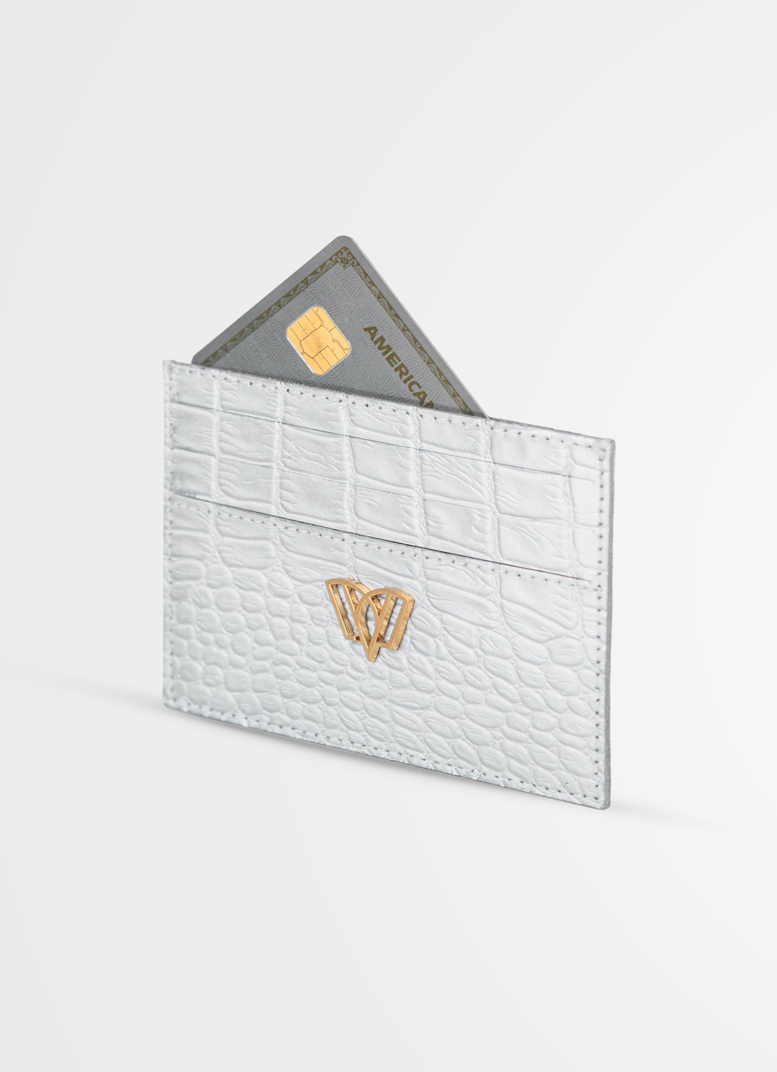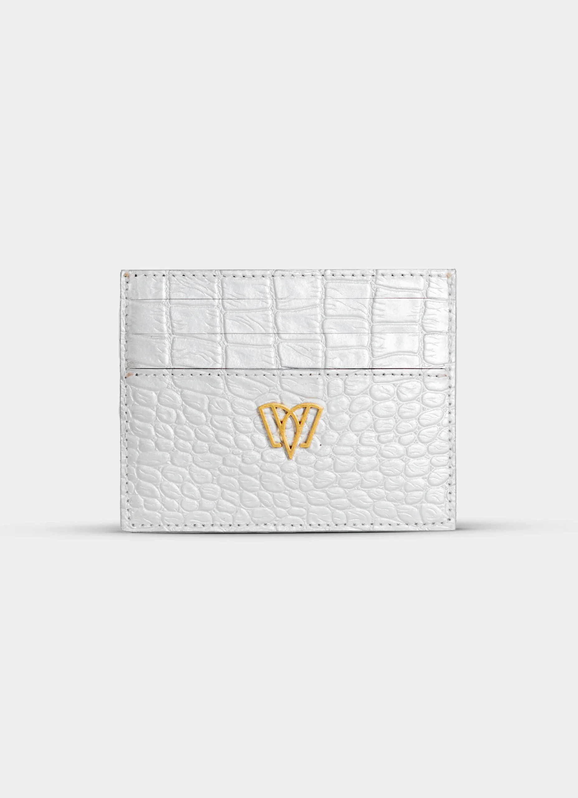 Tarjetero en cuero genuino con textura de cocodrilo.