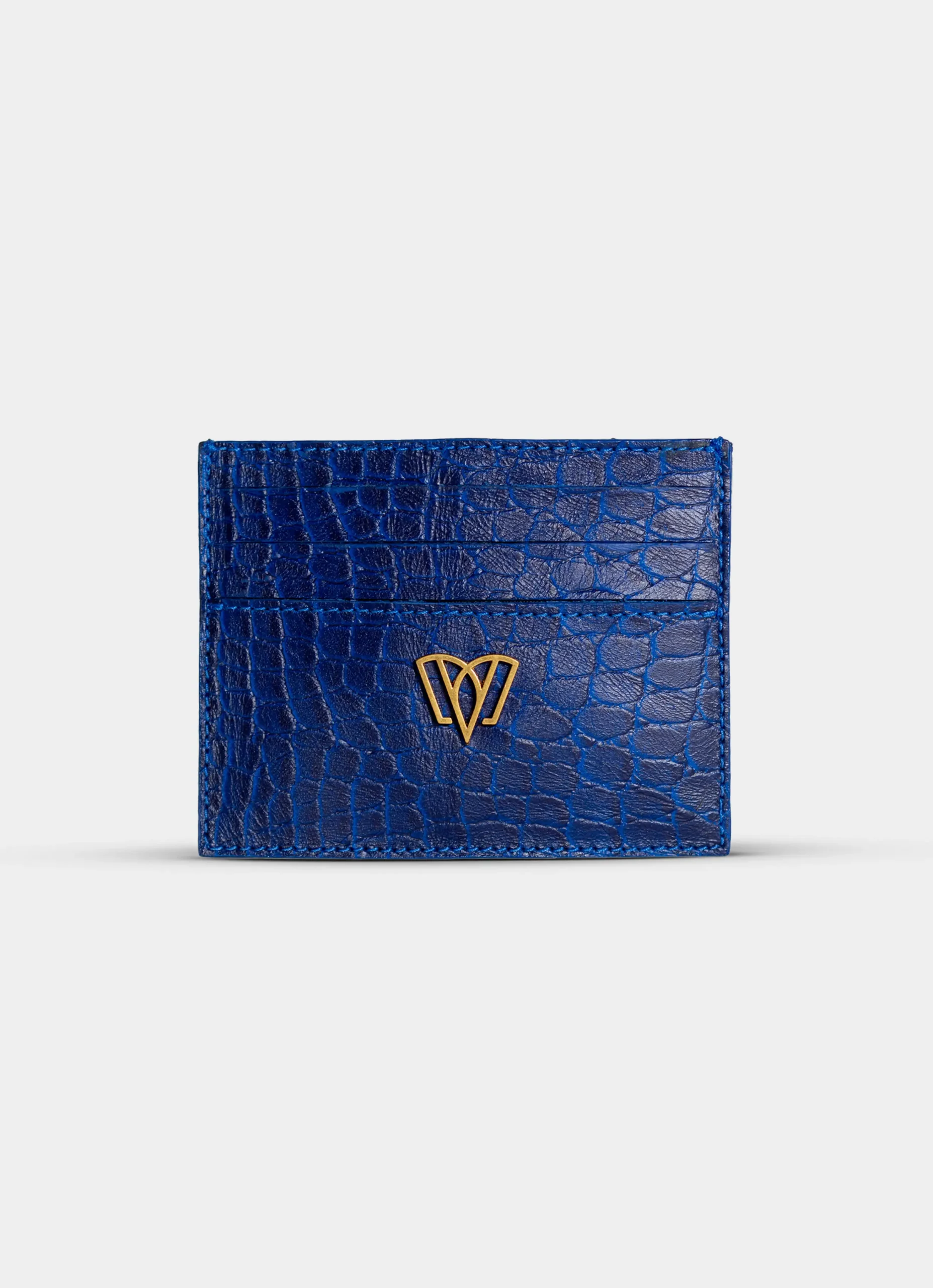 Tarjetero en cuero genuino con textura de cocodrilo.
