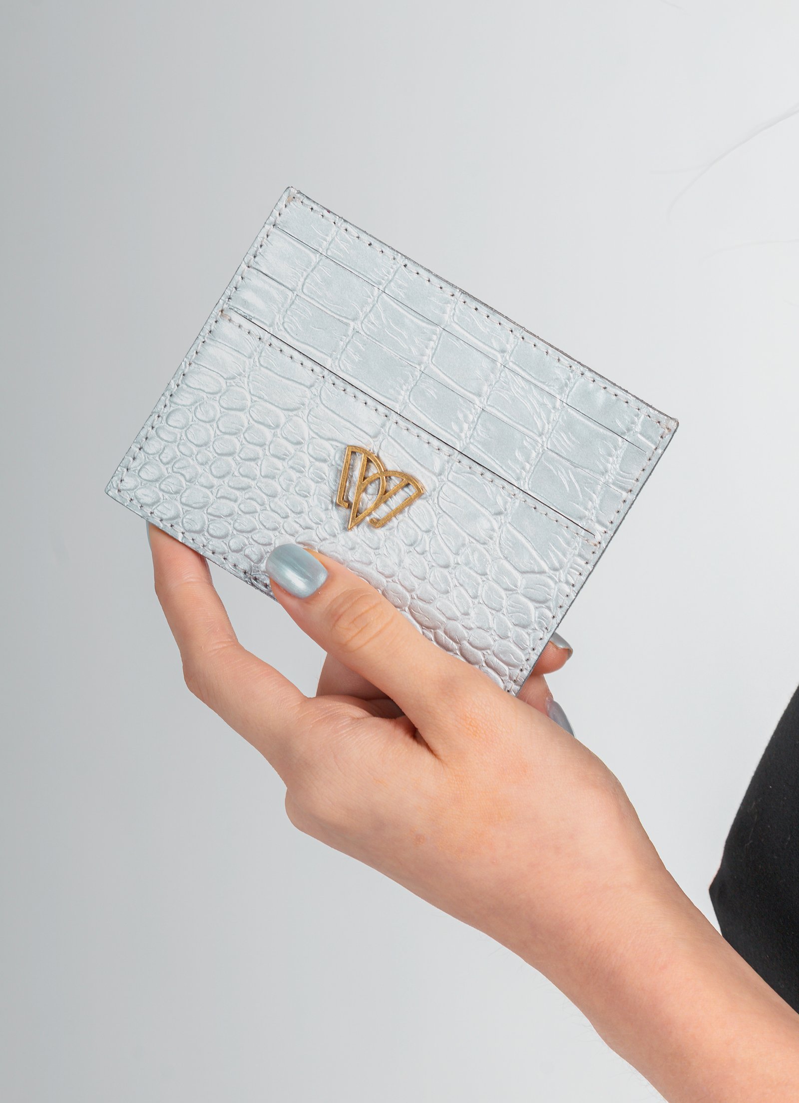 Tarjetero en cuero genuino con textura de cocodrilo.